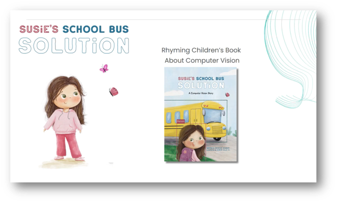 The "Susie's School Bus Solution" is a children’s book crafted entirely in rhyme, designed to simplify the concepts of computer vision and object detection. Inspired by Kristen's daughter, Susie, the book follows a narrative that explains the model-building journey, from setting up a camera and collecting data to annotating images and running the model.