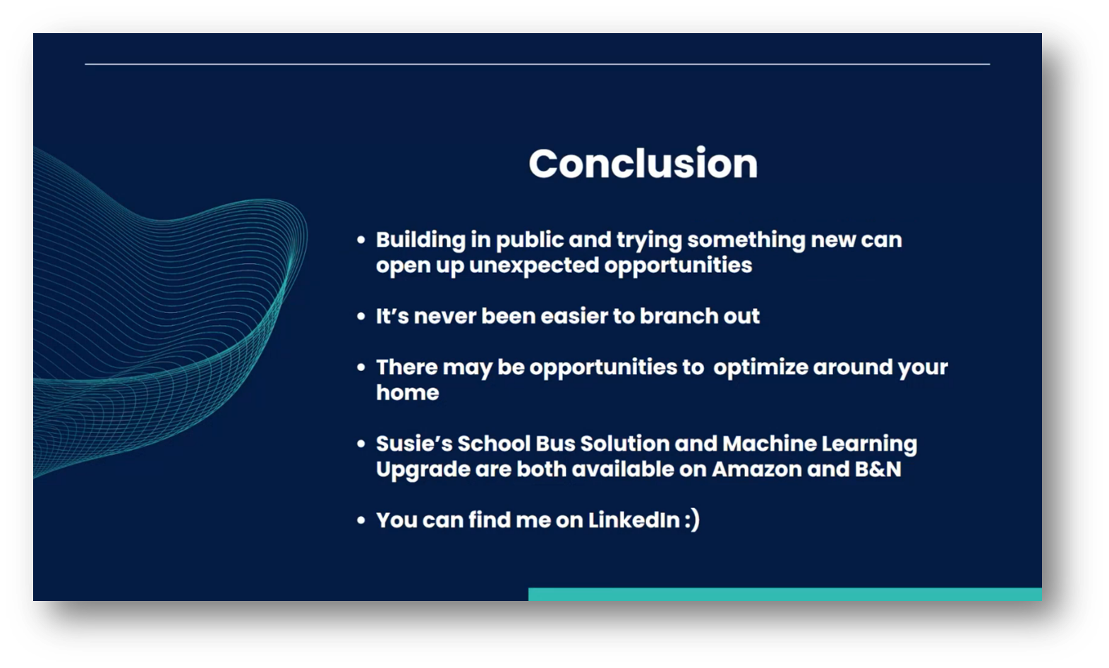 The importance of exploring innovative ideas was highlighted, particularly in optimising aspects of home life, while emphasising the enjoyable experience of working with audio data. Additionally, an attendee posed a challenging question regarding the transition from technical detection of school buses to making the concept accessible for children in a book. The most significant challenge Kristen cited was the need to simplify language for a first or second-grade audience while ensuring the content remained technically sound and rigorous.