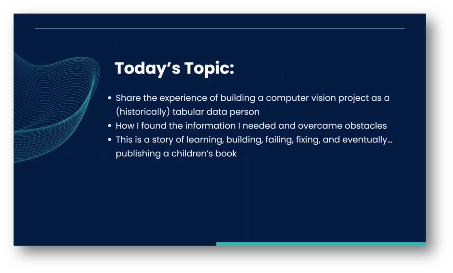 Debbie Diesel opened the webinar and introduced the speaker. Kristen Kehrer, who is based in Boston, is an accomplished author whose experience promises to be insightful for attendees. Additionally, she has been a data scientist since 2010, and transitioned from traditionally working with tabular data to exploring computer vision, culminating in the development of a system to detect school buses.