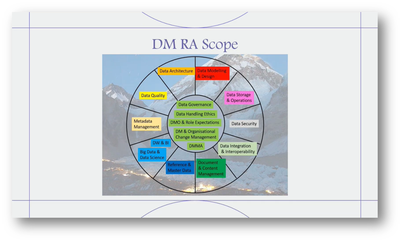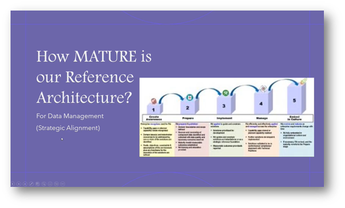 The beginning of Howard’s presentation centred around the term "P3T," which stands for Principles, Policies, Procedures, and the Reference Architecture for Technologies. Howard noted that an explanation of the acronym was required, especially after a recent inquiry. Additionally, an attendee shared that they had previously spent a month discussing these principles and their operationalisation and outlined how to integrate them into Business As Usual (BAU) and ensure compliance. Moving forward, the focus will now shift to understanding and constructing the Reference Architecture that supports these technologies as outlined in the Data Management Body of Knowledge (DMBoK).