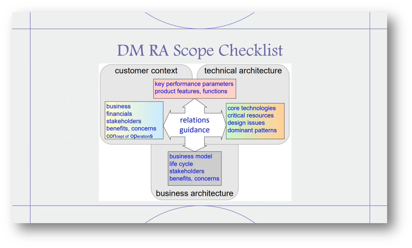 Howard then highlighted the concept of architecture in the context of various industries, particularly focusing on the emergence of Reference Architectures tailored to specific sectors, such as Industry 4.0 for manufacturing and frameworks for smart cities. These specialised architectures encompass essential business models relevant to each industry, emphasising the integration of data operations rather than solely hardware considerations.