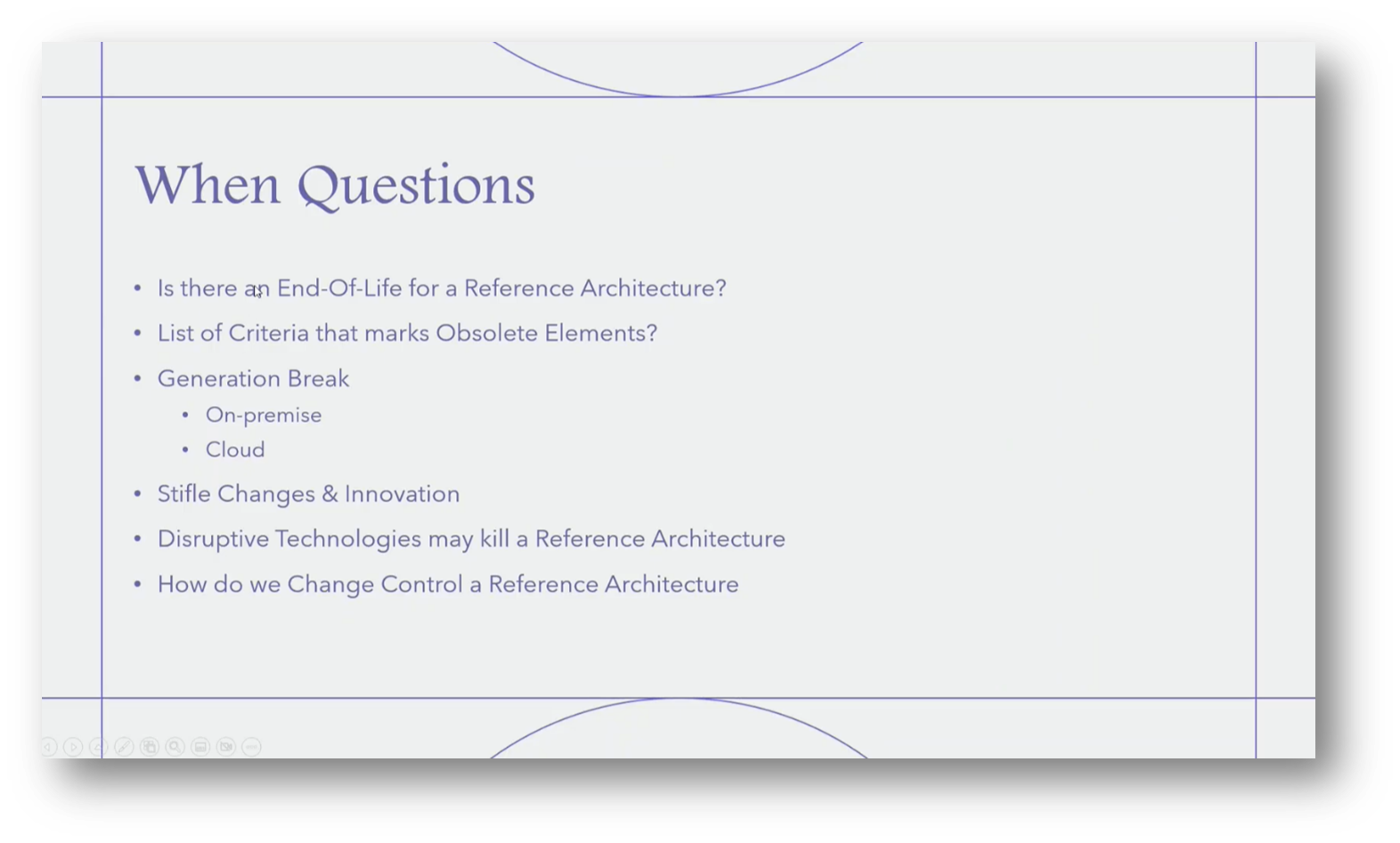 The ongoing evolution of Reference Architectures necessitates continuous enhancement to accommodate new approaches and environmental changes, particularly as organisations transition to cloud-based scenarios. It raises critical questions about the lifespan of existing architectures, such as whether the emergence of Big Data renders traditional architectures obsolete, and what criteria determine when elements of these architectures become outdated.