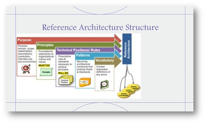 The Reference Architecture serves as a guiding framework for solution architects tasked with addressing specific departmental needs through the implementation of technology solutions. This architecture outlines the necessary principles for developing the solution architecture, considering various constraints such as budget, environment, and vendor preferences, whether single vendor or best-of-breed. Furthermore, it provides a checklist for scoping the project's requirements, ensuring that all essential factors are considered during the solution implementation process.