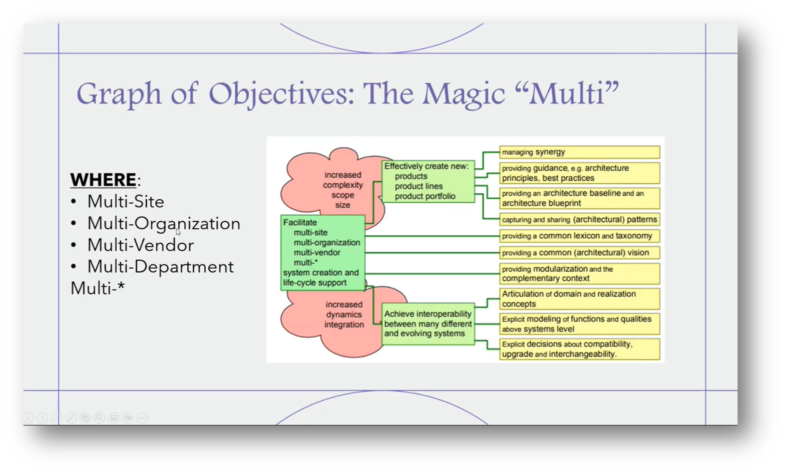 Howard then focused on developing a comprehensive data architecture by identifying key modules and their interconnections, specifically highlighting the importance of including a Data Management component that had been overlooked. He emphasised that operating in silos—focusing solely on data architecture or design—can lead to missing critical integrations necessary for a cohesive enterprise approach.
