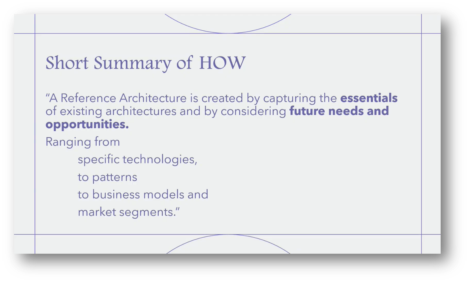 A Reference Architecture is a dynamic framework that evolves in response to changing business needs and capabilities. Initially, it is developed by understanding customer and business requirements, which guide the creation of the Reference Architecture. However, it is not a one-time task; as new use cases or business capabilities emerge, the architecture must be redefined and updated. Additionally, it serves as a guide for modifying existing architectures by identifying successful patterns and solutions that can be integrated back into the Reference Architecture, ensuring it remains relevant and effective over time.