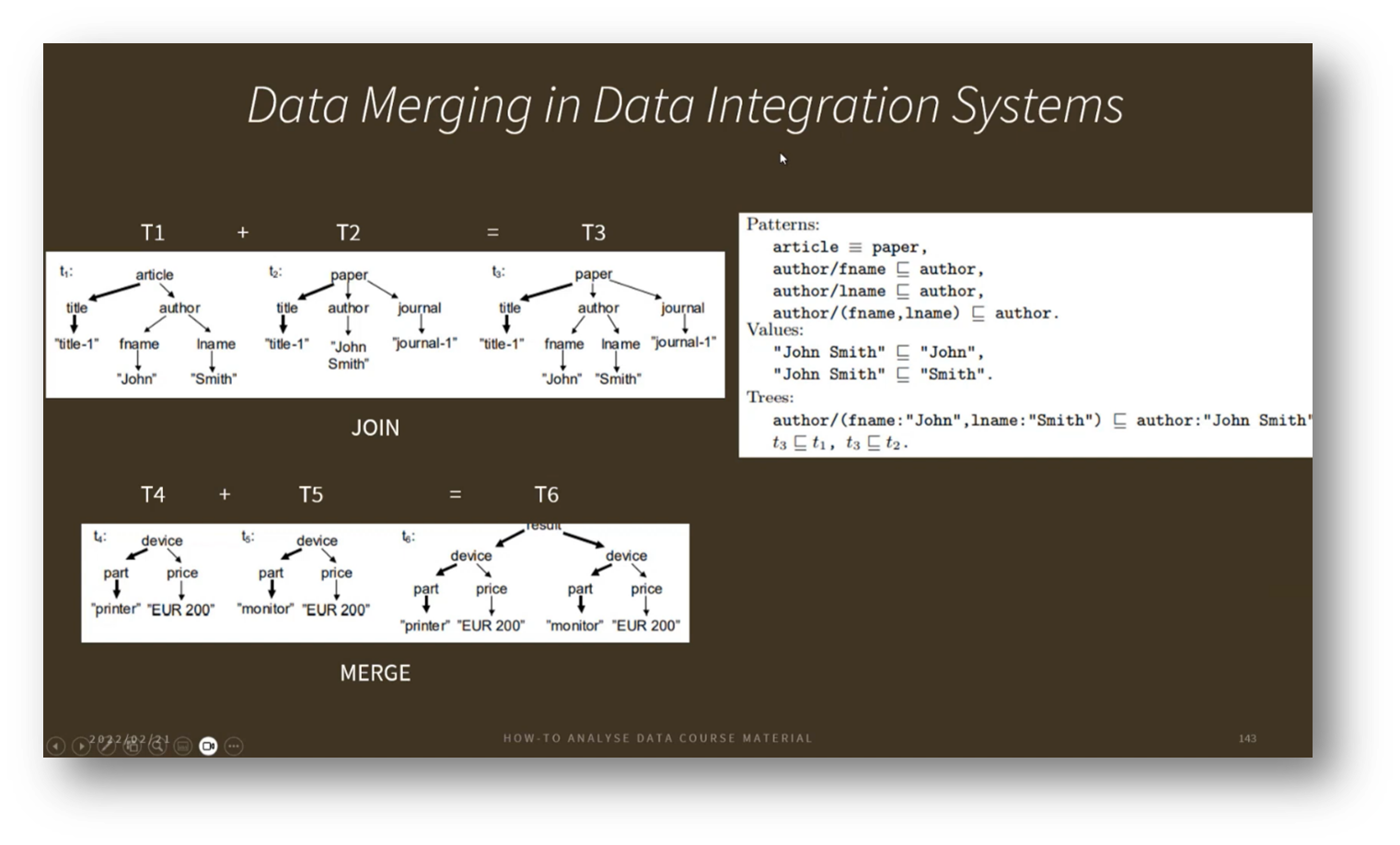 Dealing with unknown questions and answers often entails working with chaotic data, which can be more time-consuming to resolve. A crucial aspect of this is data integration, where information from multiple datasets—such as article titles and authors or paper titles, authors, and journals—can be combined using techniques like joining or merging. This integration allows us to enhance our understanding by leveraging ontologies and constraints that describe the relationships within the data, leading to exciting advancements in the field.