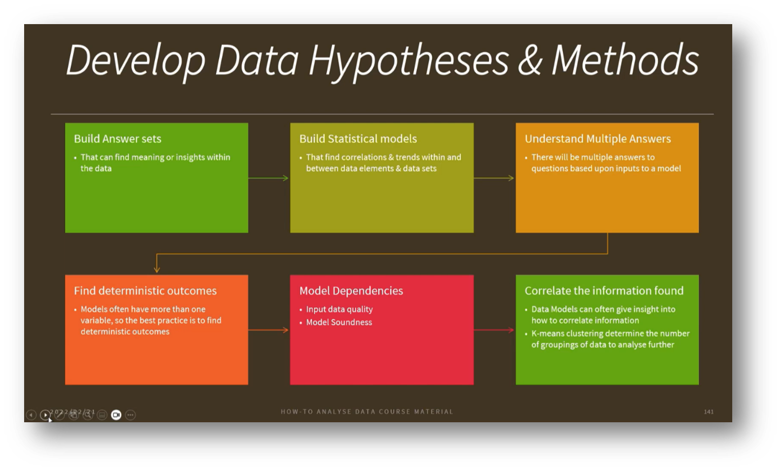 The process of developing hypotheses and statistical models involves understanding various states of information. These states may be categorised into four quadrants: known questions with known answers, known questions with unknown answers, unknown questions with known answers, and unknown questions with unknown answers.
