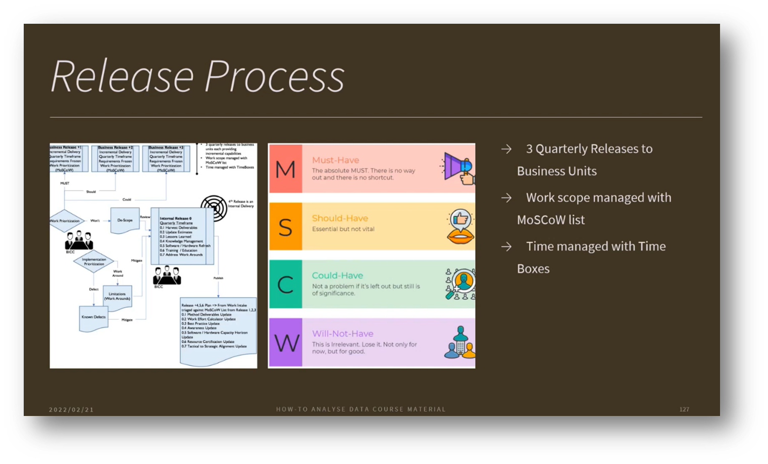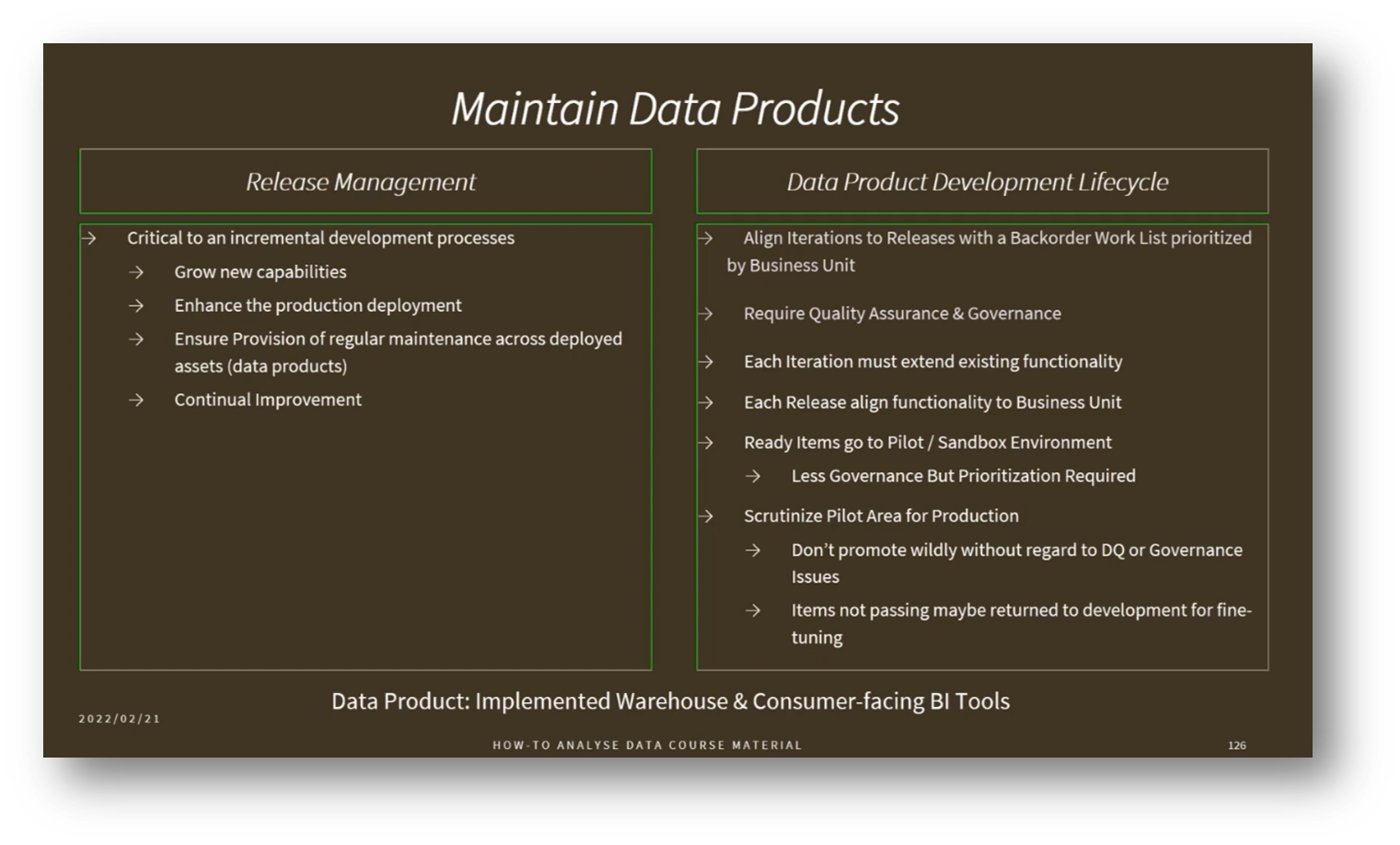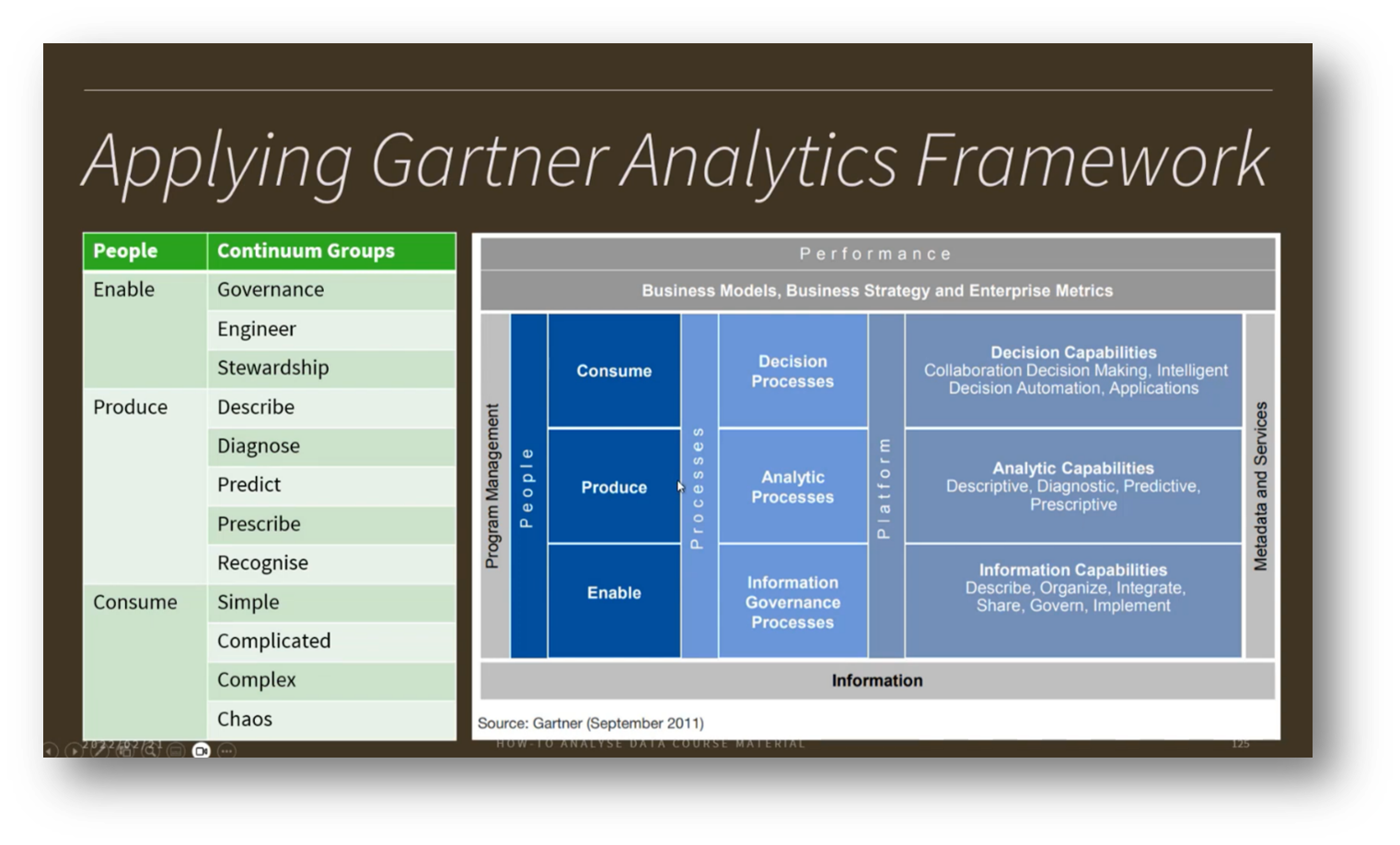 The Gartner analytics framework underlines the importance of people, processes, platforms, and Metadata in driving various analytics types. Effective data product management follows a release process guided by prioritised use cases, ensuring alignment with business needs and Data Strategy.