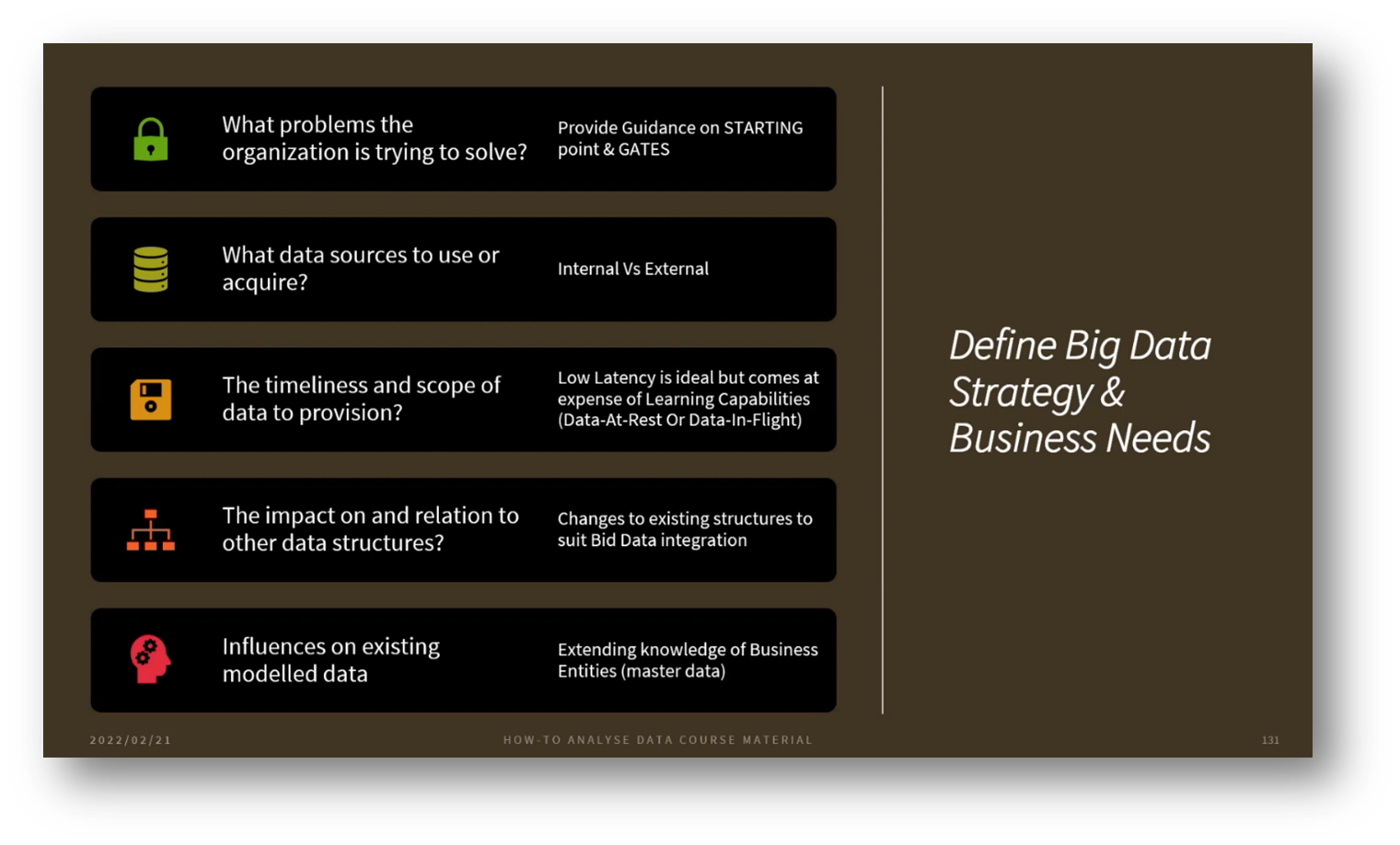 The evolution of Data Management is marked by the emergence of the Data Lake House, which integrates a data warehouse framework on top of a Data Lake to standardise transformations across data scientists, diverging from traditional Big Data approaches. This model aims to create a common data source for Business Intelligence (BI) while emphasising the unique aspects of Big Data environments, such as the preparation of training datasets. It involves developing hypotheses based on customer responses and refining decision-making processes through probing and sensing. Additionally, integrating and aligning disparate data sources—often from external sites—requires a thorough understanding of Metadata and master data, distinguishing it from conventional internal systems like ERP. While Data Warehousing processes are well-defined with predictable outcomes, Data Science introduces uncertainties related to data completeness and challenges in establishing causation versus correlation, highlighting the complexities in deriving insights.