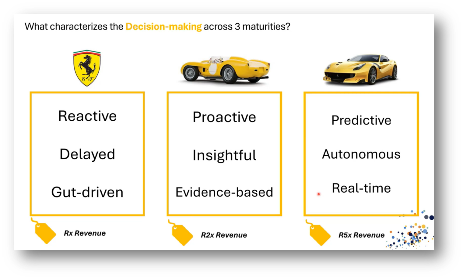 Alet highlights the critical shift from traditional, reactive decision-making, which often relies on gut instincts and outdated practices such as using Excel as a database, to a more proactive, insights-driven approach that leverages data analytics. In many organisations, executives still cling to personal experience instead of trusting data, which can hinder effective decision-making.