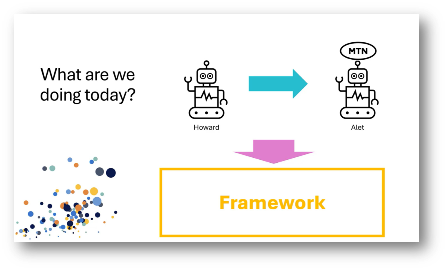 Howard Diesel opens the webinar and introduces Dr Alet Smith. Alet shares that MTN has made significant strides in evolving from traditional governance to a robust AI and data strategy, establishing itself as a leading digital platform in Africa. The company is focused on helping organisations understand the potential of data through benchmarking and maturity assessments, particularly in areas such as location data and personalisation.
