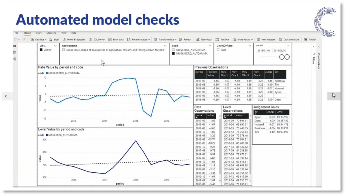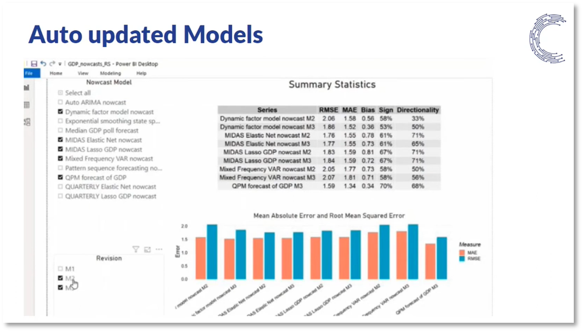 Economic models apply in various contexts, such as economics, data science, and data wrangling. Appropriate metrics and transformations are used to assess the quality of models and data. Time series and vintage data can be complex but effectively summarised in user-friendly reports. Users do not necessarily need to understand the inner workings of the models, but they can interact with and extract relevant information. Depending on user preferences, different software tools, such as Power BI or Python, can be used for assessments. Interactive reporting enables users to process, model, and forecast economic data effectively.