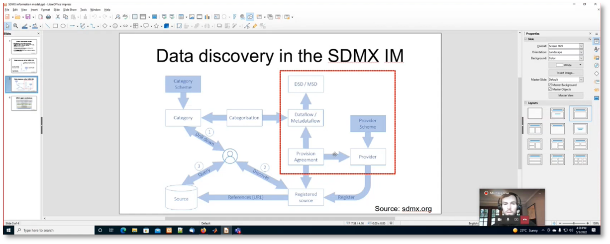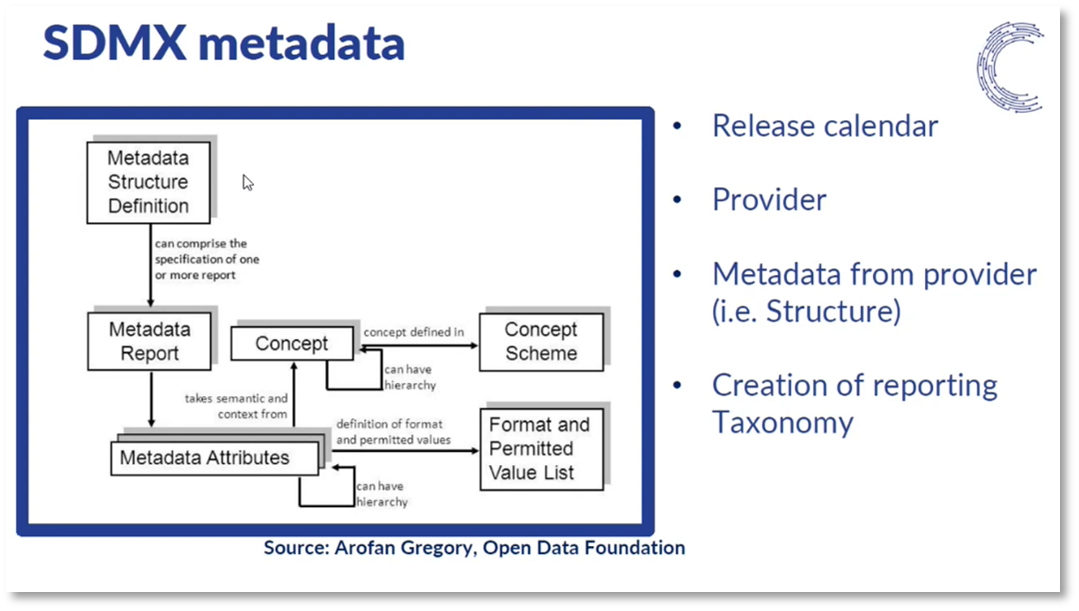 Statistical agencies, institutions, and data providers like Eurostat, central banks, multilateral institutions, and the World Bank widely use the SDMX information model. It provides a standardised structure for data and metadata, making it easier for machines to read and update databases. The SDMX model allows the combination of information from different data sets within and across organisations, simplifying data integration. It also enables transparency and governance by documenting data construction and management processes. The SDMX data registry provides an efficient way to store metadata artefacts, allowing for easy mapping and querying of data from different sources. Additionally, detailed metadata can be attached to data, including information on content, methodology, and data quality. The metadata structure definition helps manage and present concepts, dimensions, and code lists, providing valuable information for data users. Finally, the SDMX information model enables the classification of data for reporting and publication purposes and the construction of taxonomies for different groups of data flows and metadata.
