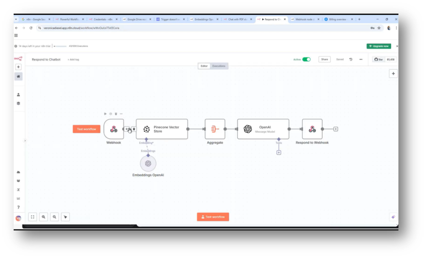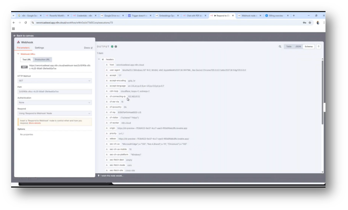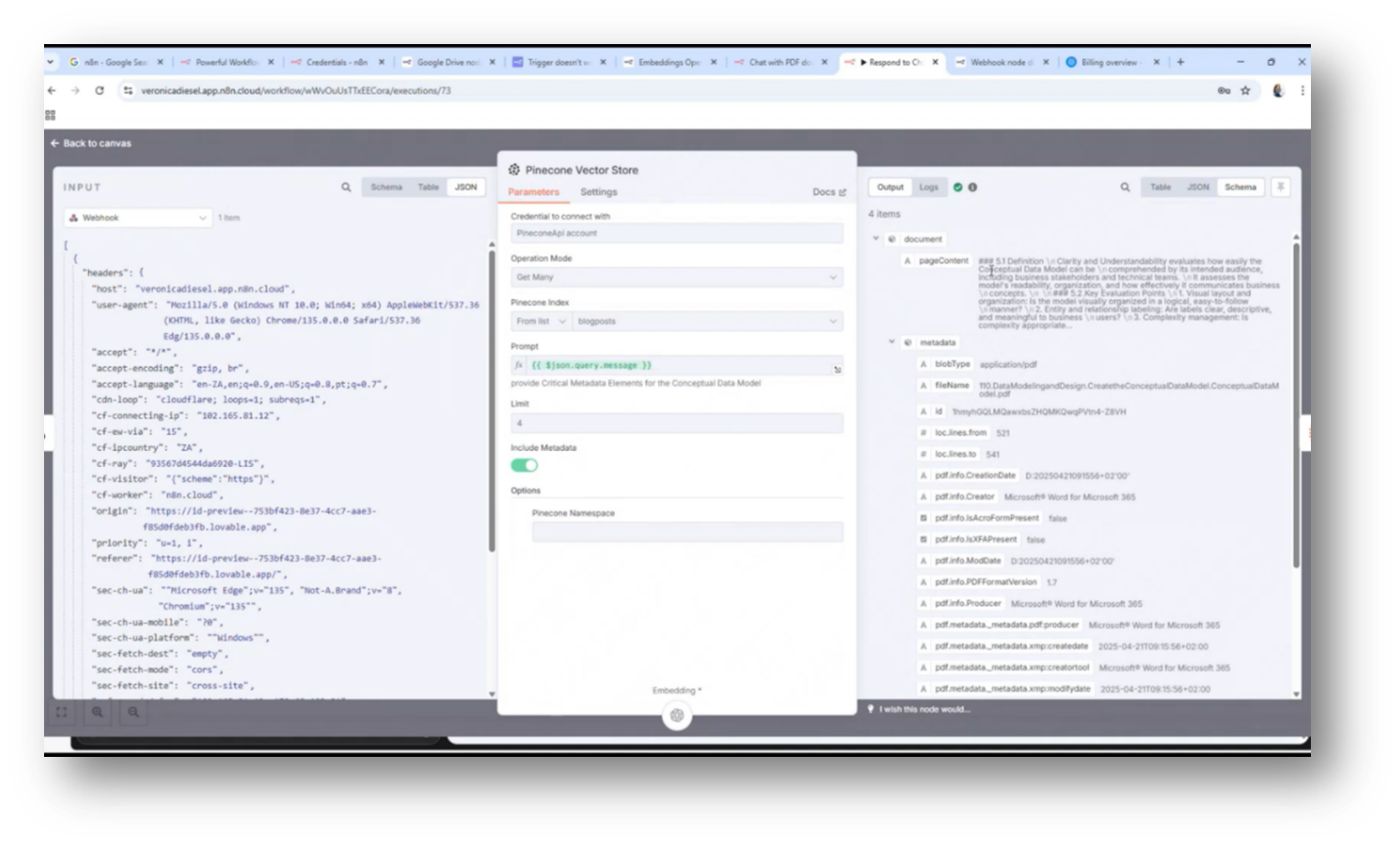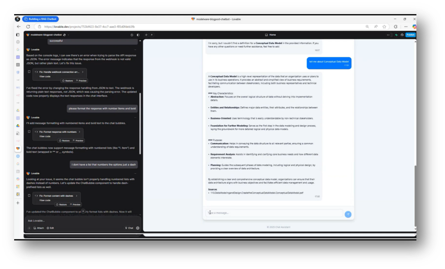 The Chatbot was created using a technology stack that includes Lovable, a platform where users can create their own domains and build websites. While the website-building experience was underwhelming, the chatbot proved to be highly effective. An orchestration engine called n8n facilitates data integration and interoperability, allowing for seamless data movement between the user interface and a vector database.