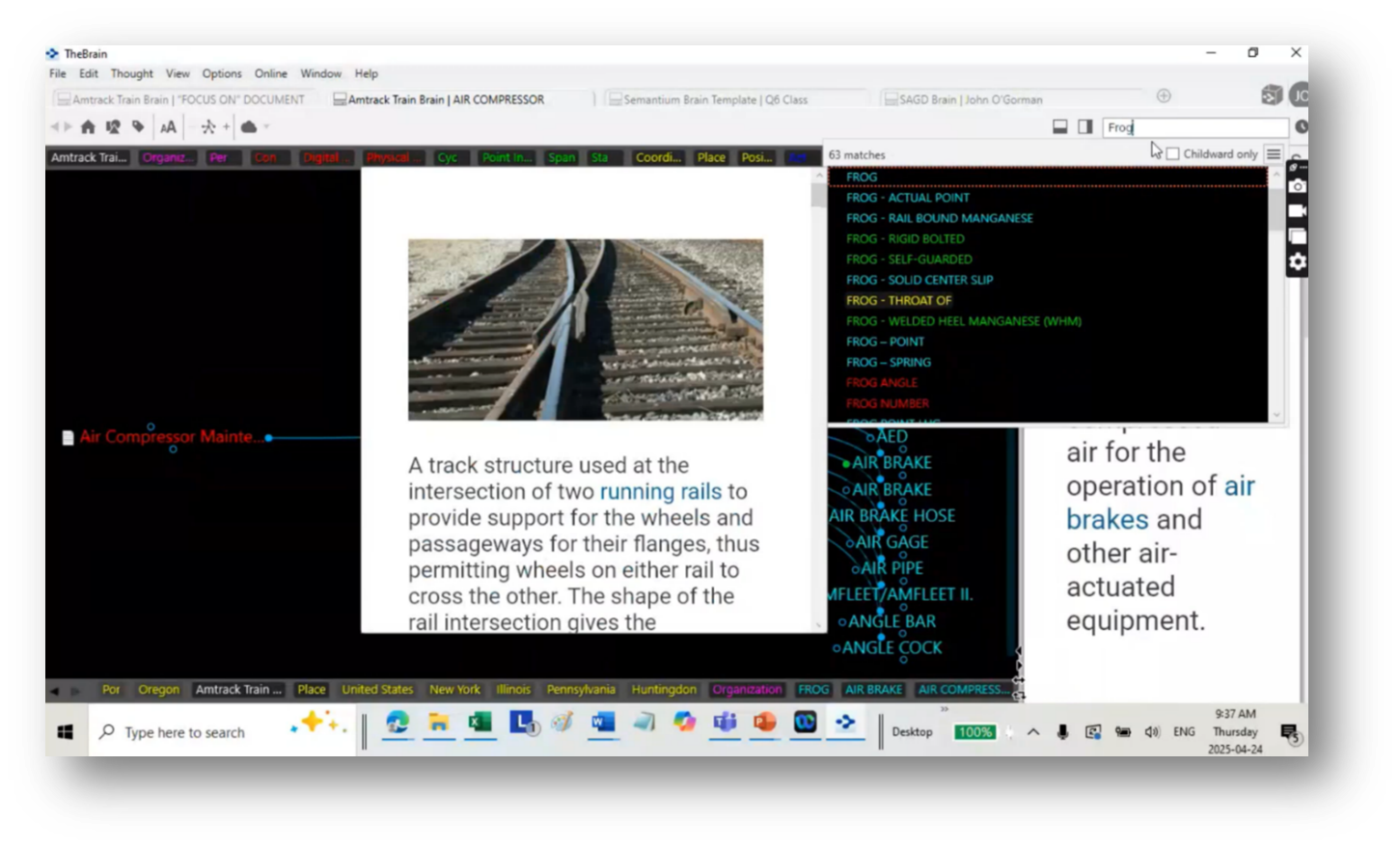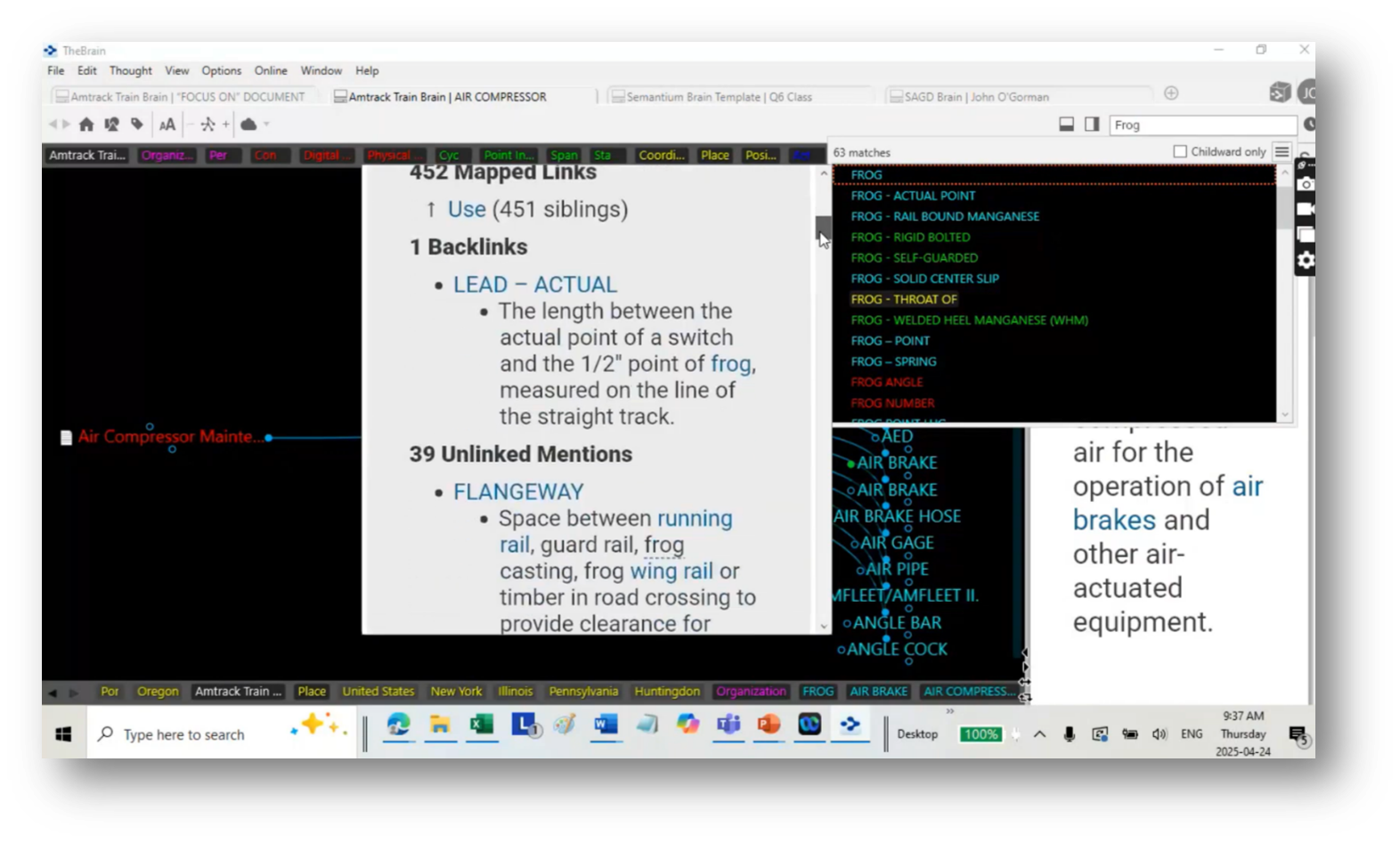 John shared more on the approach of a technology-agnostic classification system exemplified by a $250 mind mapping software called The Brain, which facilitates comprehensive documentation and training, such as air compressor maintenance guides. It enables users, including new hires, to quickly access definitions and related concepts, facilitating efficient information retrieval.