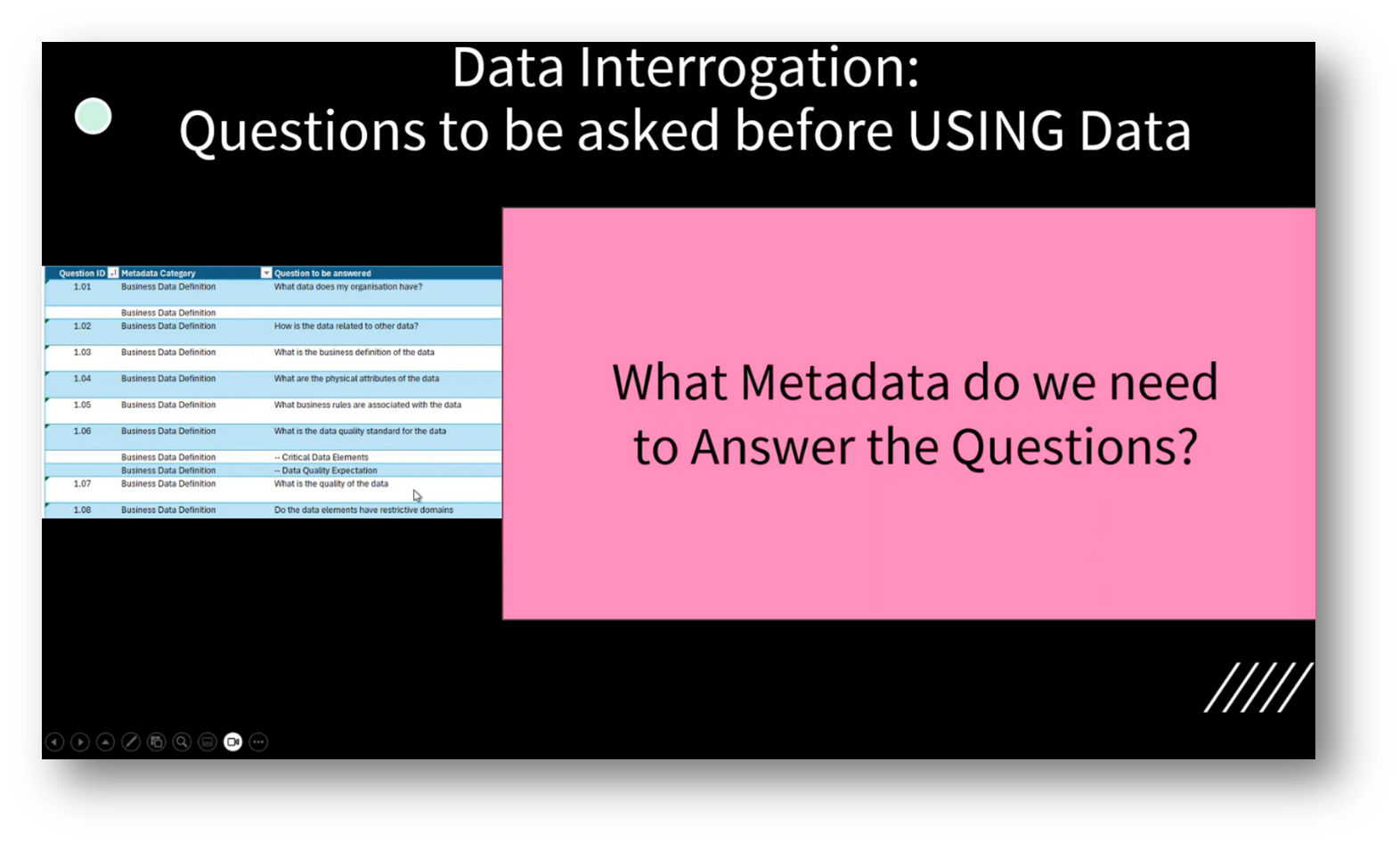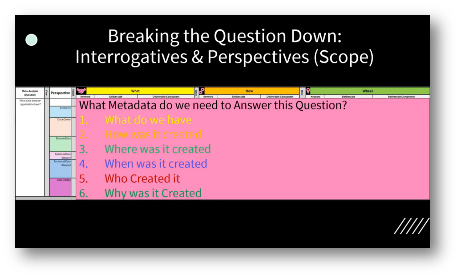 Figure 5 "What Metadata do we need to answer the Questions?"