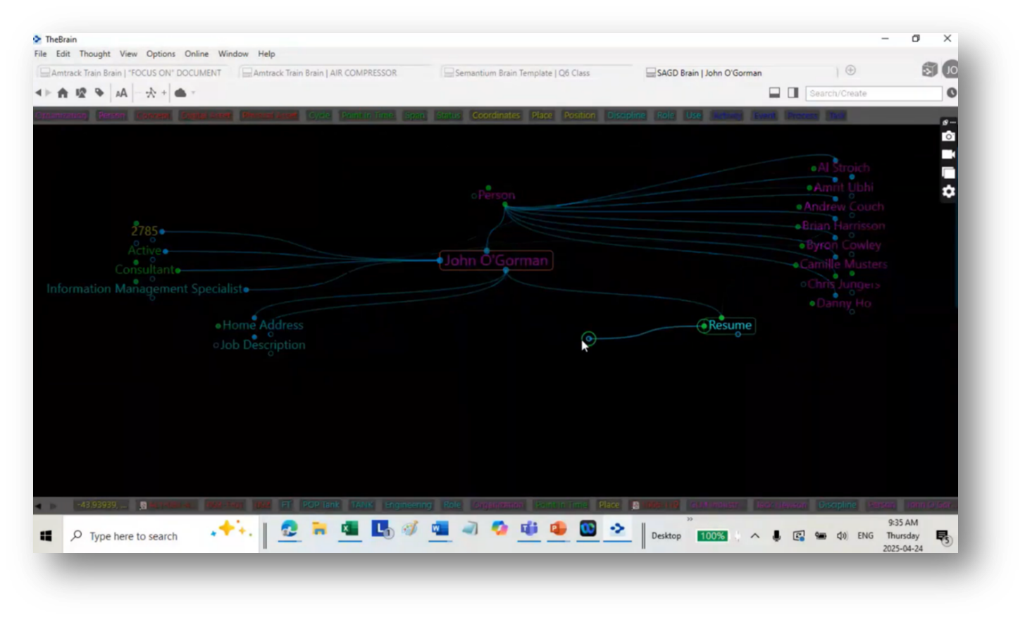 John O’Gorman then demonstrated the process of examining discipline values within an organisation. Semantium has the ability to identify individuals in specific roles, such as John O'Gorman, who is located in office 2785 and works as an active consultant and information management specialist. John notes that information, including home addresses and resumes, is accessible, and documents can be attached for reference.