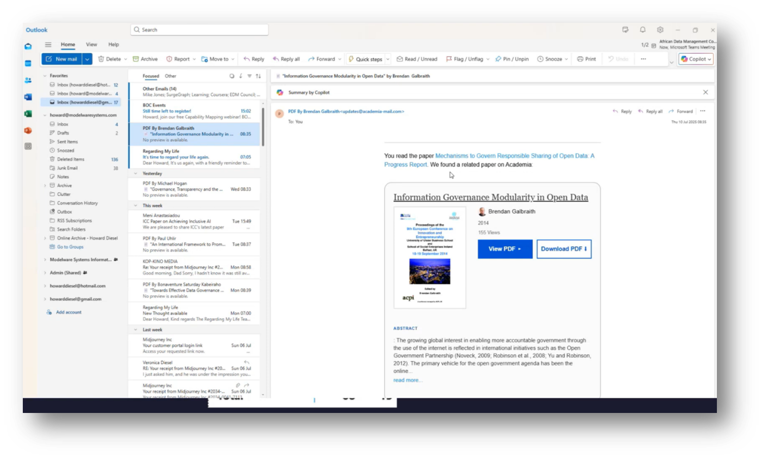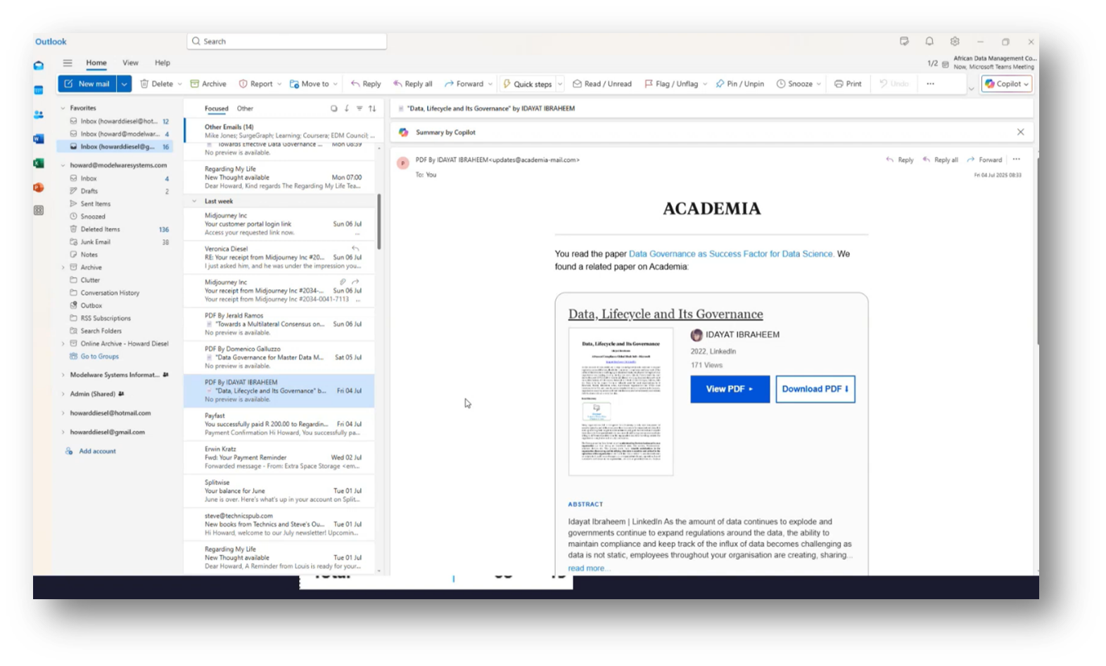 This webinar highlights key topics related to the advancement of data management and governance frameworks. Howard Diesel evaluates the strengths and weaknesses of the DMBoK Version 3 and emphasises the importance of a comprehensive content strategy, as well as the need for effective board representation in international relations. He then explores international travel opportunities and stresses the importance of global collaboration in data management, including aspects of open science, intellectual property, and volunteer-based organisational structures.