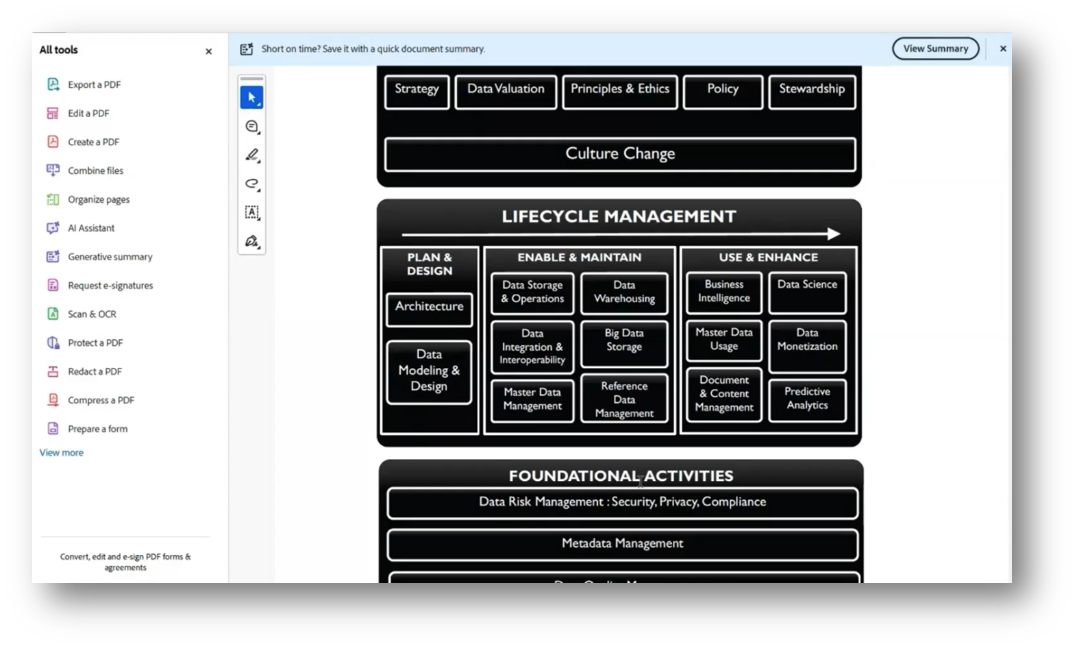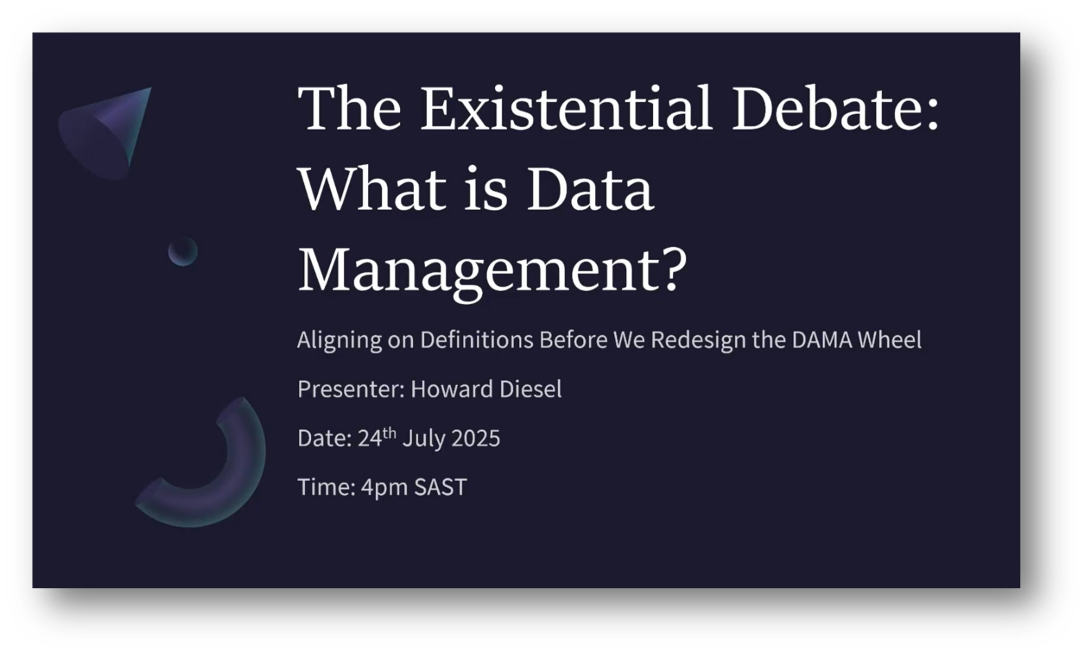 This webinar focuses on the broad spectrum of data management, which encompasses concepts, principles, and challenges, reflecting its critical role in technology and organisational success. It involves defining data governance, architecture, and modelling while addressing the integration of big data, data ethics, and change management. The continuous evolution of data management underscores the importance of the data lifecycle in decision-making processes and the implementation of strategies that promote effective data management practices. This comprehensive approach promotes meaningful discussions around the inclusion and exclusion of knowledge areas within data management, ensuring the discipline adapts to the dynamic landscape shaped by advancements in AI and generative technologies.