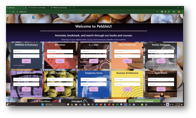 During the COVID-19 pandemic, Steve Hoberman developed a project called PebbleU, inspired by the collective desire to acquire new skills while many were confined to their homes. Recognising the opportunity to leverage our extensive collection of over 150 published books on data, including the DMBoK, the goal was to create concise, digestible content that allows individuals to acquire interesting knowledge in just a few minutes, enabling them to integrate learning seamlessly into their daily routines. The name PeppleU reflects this concept of delivering small, bite-sized pieces of valuable information.