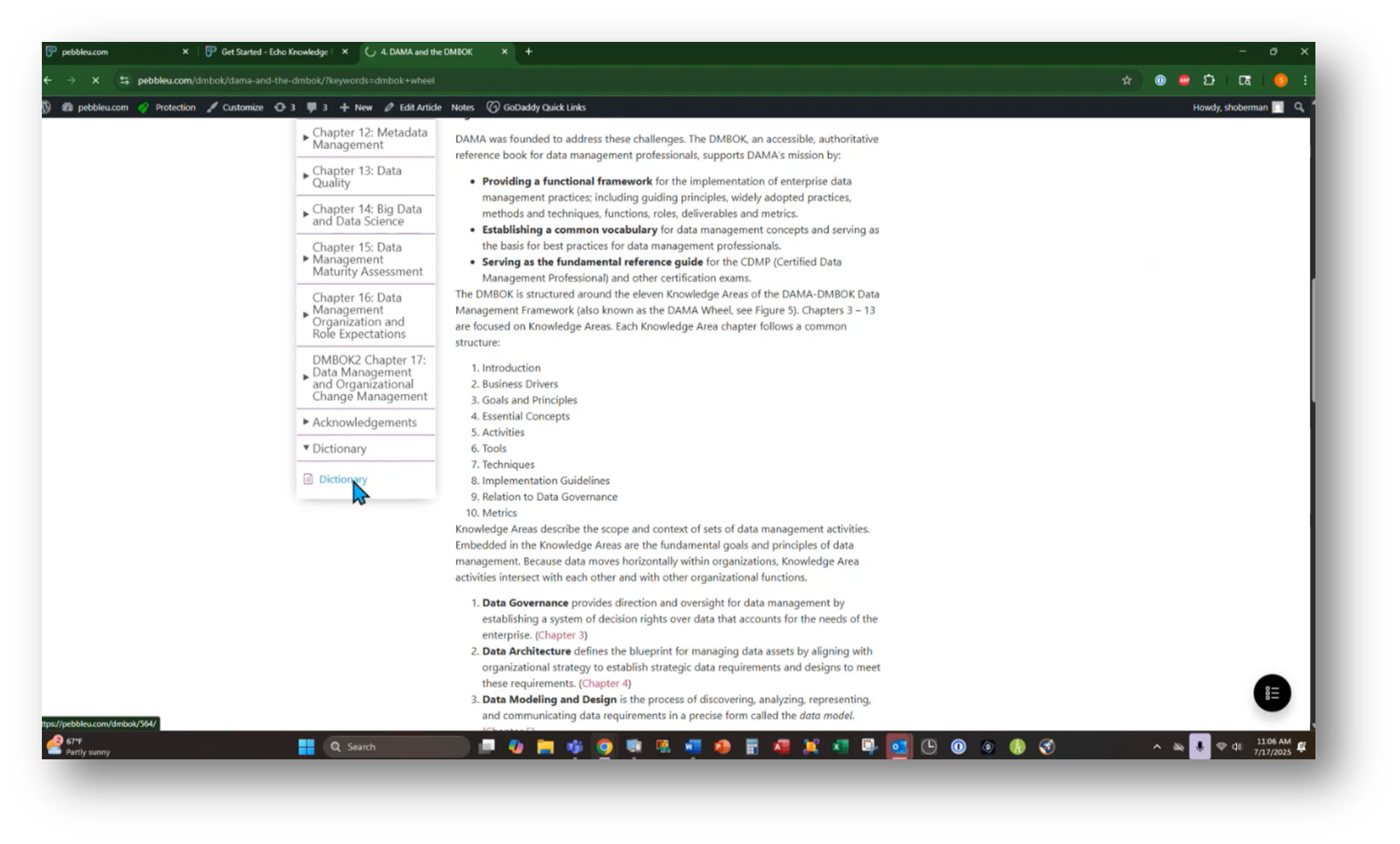 Exploring the Data Management Body of Knowledge (DMBoK) for Data Professionals