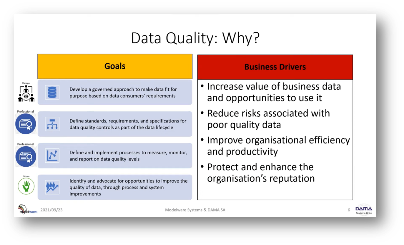This webinar highlights key aspects of data management and quality for professionals in the field. Howard Diesel emphasises the principles of Data Quality Management and the importance of data profiling, which is critical for effective Master Data Management and ensuring data integrity throughout ETL and data transfer processes.