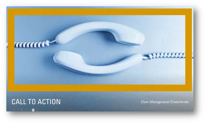 Howard highlights the three key action points regarding data management best practices, emphasising the provision of a high-level mapping between the DM Bock and DCAM, available upon request. While deploying an in-house data management instrument based on the DMBoK is encouraged to establish a baseline, it is deemed unsustainable in the long term.