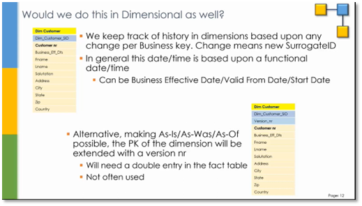 Remco discusses the importance of Dimensional Data Modelling in a business context. He suggests adding parts to a key, distinguishing between the base effect date and requested delivery date, tracking history in Dimensional Modelling, using "as is" and "as was" as an alternative approach, maintaining version numbers for customer IDs to track changes and updates and discusses the potential benefits and challenges of using version numbers in Data Management.