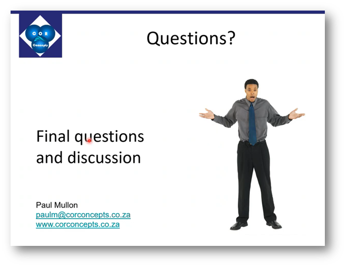 An attendee then asked a question on classification, to which Paul emphasised the importance of a structured approach to managing records, specifically referring to a business classification scheme or file plan in this context. This involves organising records, excluding correspondence, to facilitate easy searching, retrieval, and management.