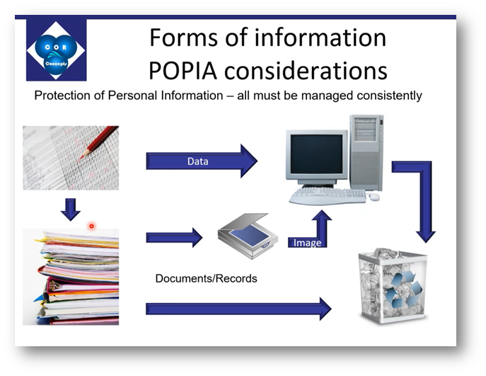 Records managers often insist on retaining the physical paper as the official record, even after digitisation through scanning, which creates images along with metadata and incorporates electronic documents from emails. According to the POPIA framework, data gathered for a specific purpose must be destroyed once that purpose is fulfilled, necessitating the identification and cohesive management of all related artefacts across different locations. This complexity emphasises the importance of understanding that managing data goes beyond mere records retention, raising crucial considerations for effective information governance.