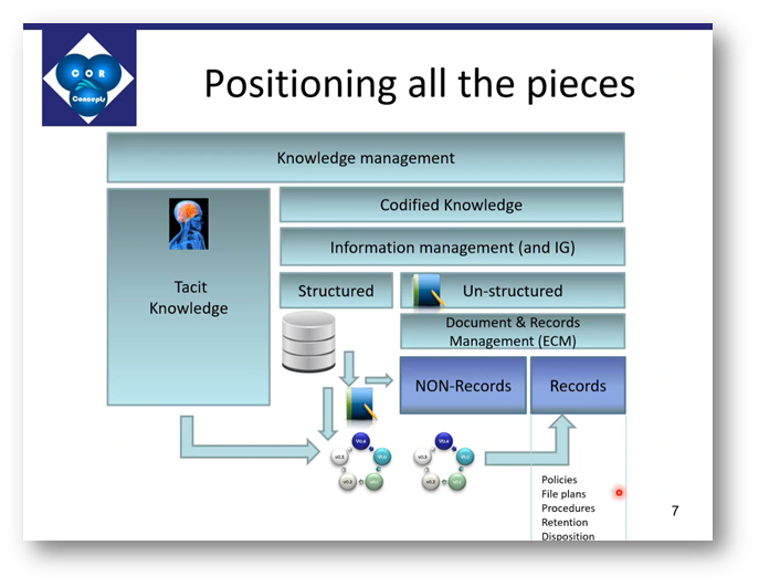 This webinar outlines key themes in records management, as presented by Dr. Paul Mullon, highlighting the distinctions between information governance and data governance, and emphasising the critical role of records management within these frameworks. It explores essential concepts, including records management standards, the evolution of artificial intelligence, and the intersection of knowledge management with information governance.