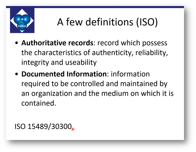 The organisation adheres to two key standards: the worldwide Records Management standard and the management system standard (ISO 3300 series), specifically ISO 3301, which aligns with other well-known standards, such as ISO 9001 and ISO 27001. These standards emphasise the criteria for a trustworthy record, focusing on attributes such as authenticity, reliability, integrity, and usability.