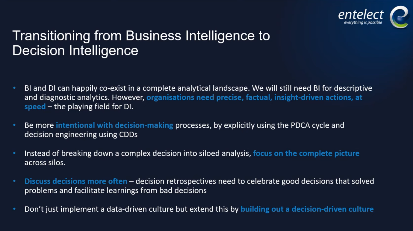 Figure 13 Transitioning from Business Intelligence to Decision Intelligence